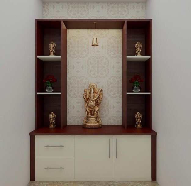 A dedicated spiritual corner, designed with traditional aesthetics, offering serenity and a sacred atmosphere for daily worship rituals.
